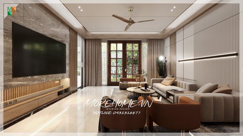 Thiết kế không gian phòng khách biệt thự thoáng đãng, sạch sẽ góp phần mang tới 1 không gian sống thật sang trọng và ấn tượng cho tổ ấm của mỗi gia đình.