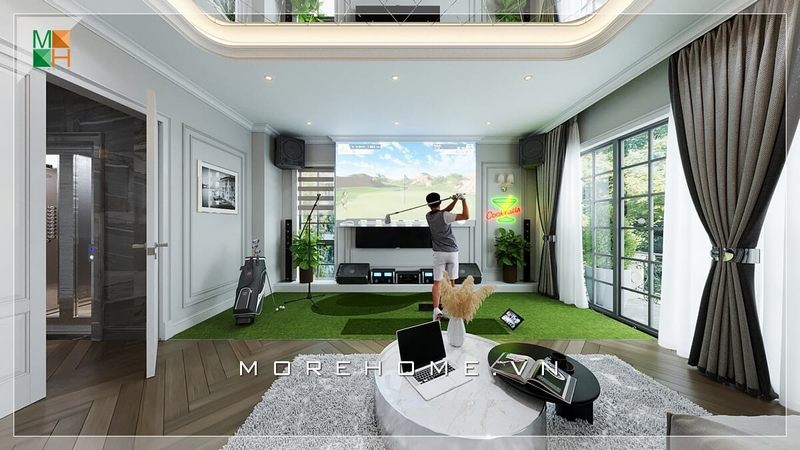 Một ý tưởng mới về thiết kế nội thất nhà phố được đề xuất với sự sáng tạo: bố trí sân golf thông minh tiện lợi trong tổ ấm gia đình.