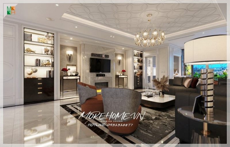 Phòng khách chung cư cao cấp là nơi thích hợp để gặp gỡ và đón tiếp khách đến thăm nhà. Ngoài ra, nó còn là không gian tụ họp của các thành viên trong gia đình. Với diện tích rộng rãi và trang trí cao cấp, phòng khách này sẽ mang lại sự thoải mái cho mọi người.